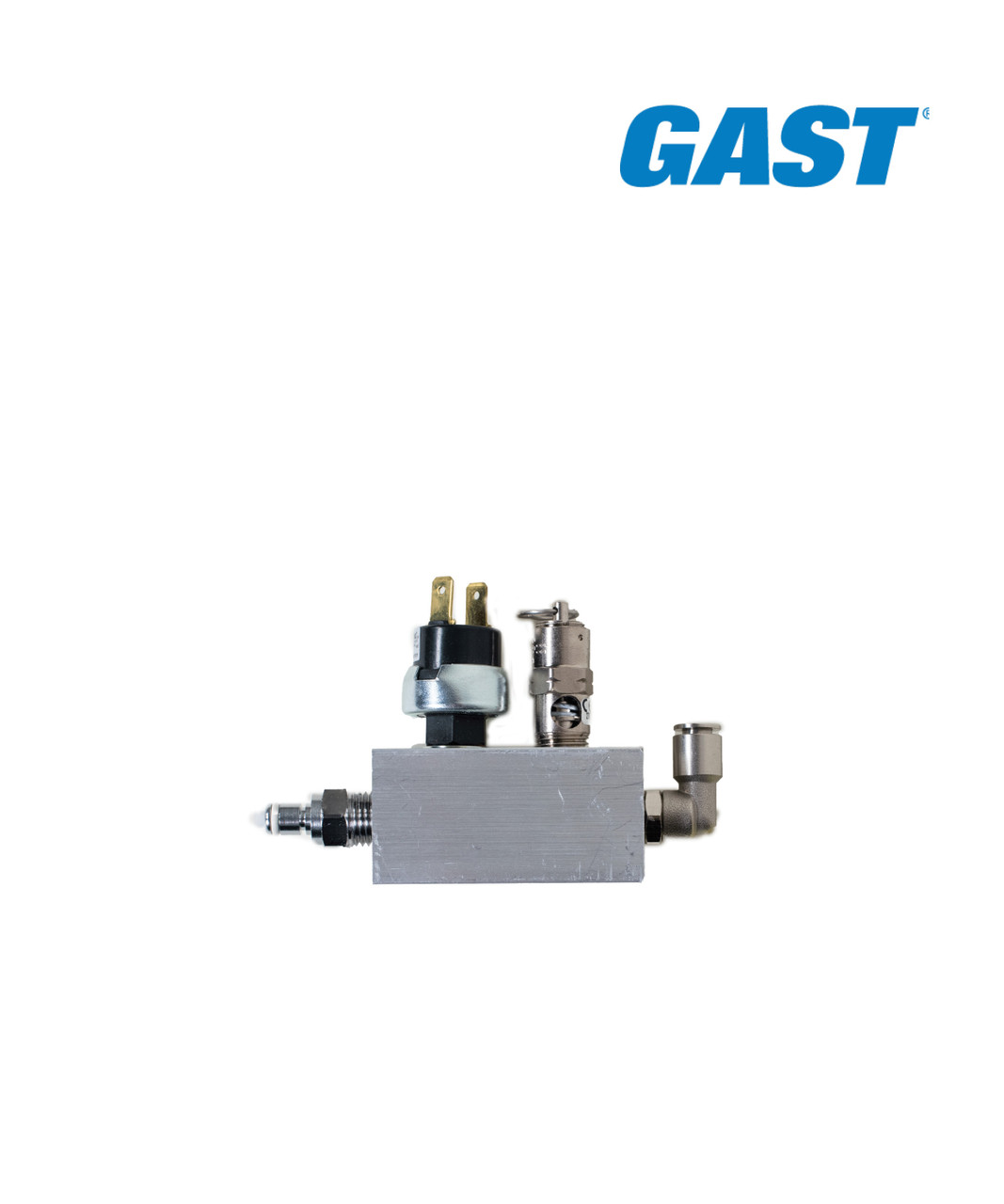 Assembly includes: (1) Manifold block, (1) Pressure switch, (1) Safety valve, (2) push to connect fittings