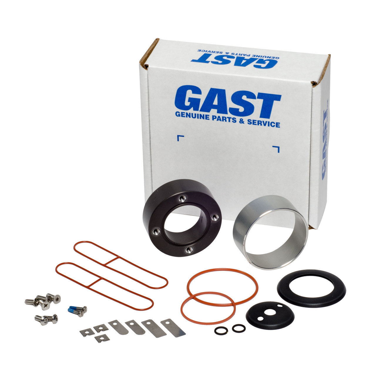 Gast K634 service kit returns your unit to original factory performance specifications. Recommend for service every 2 years. Kit contains components to service both cylinders. Service kit includes: Cups, valves, o-rings, cylinders, screws.