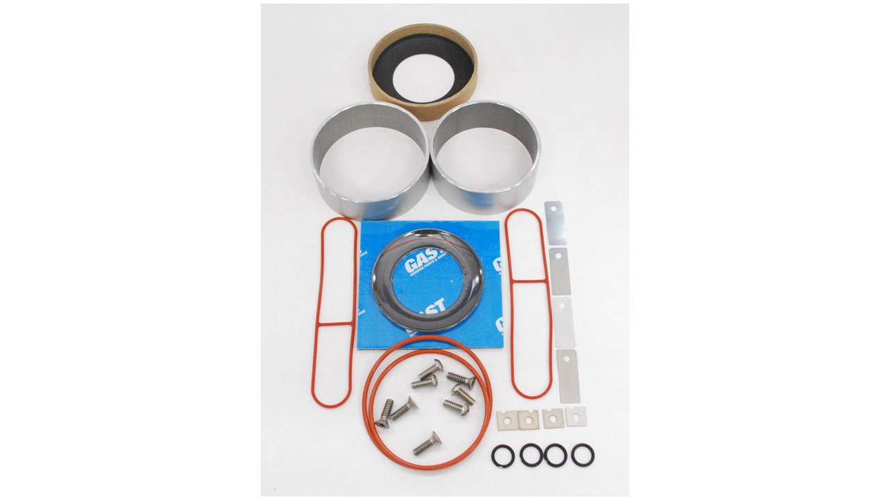 Gast K635 service kit returns your unit to original factory performance specifications. Recommend for service every 2 years. Kit contains components to service both cylinders. Service kit includes: Cups, valves, o-rings, cylinders, screws.